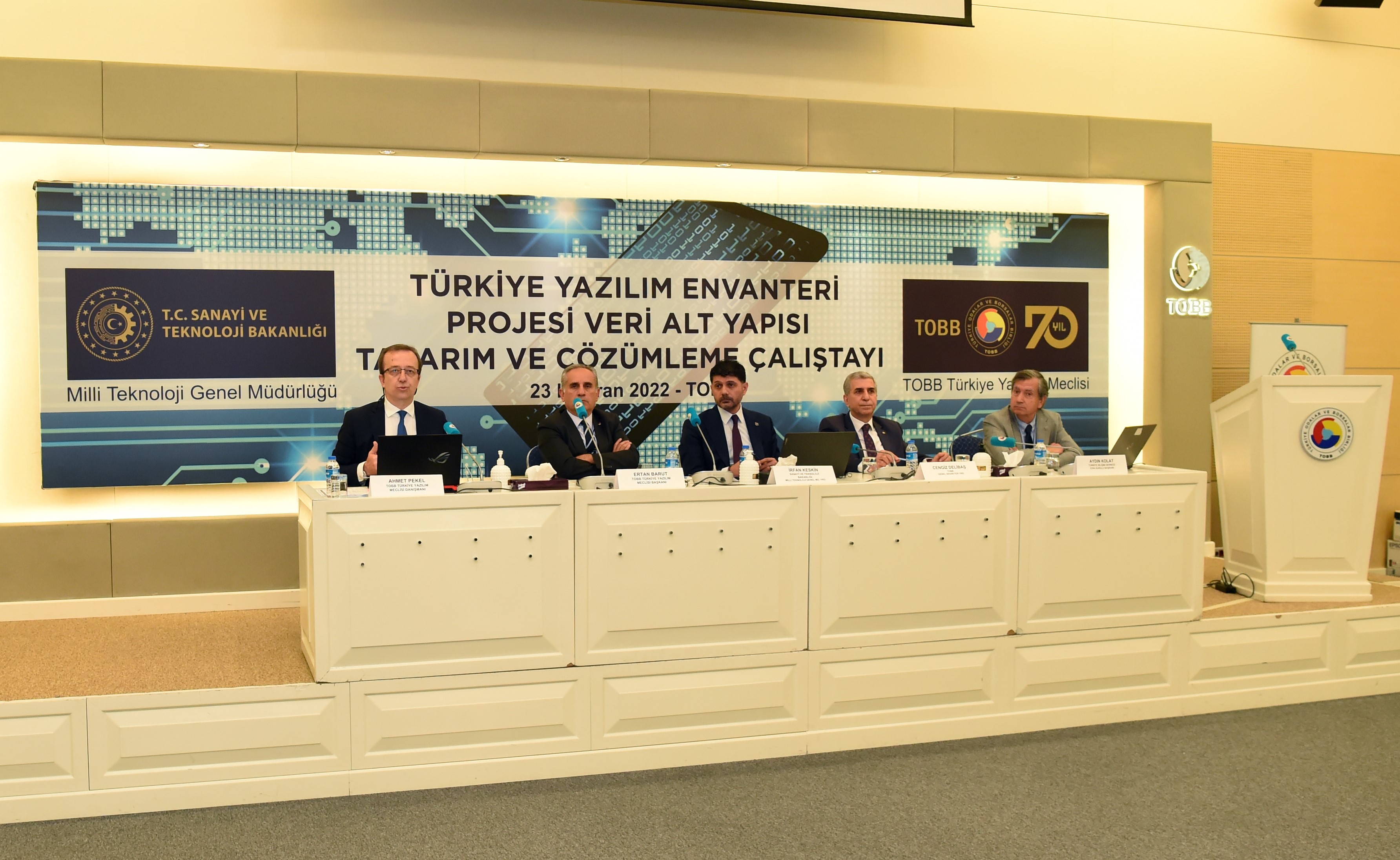 Sanayi ve Teknoloji Bakanlığı (STB) Milli Teknoloji Genel Müdürlüğü (MTGM) önderliğinde, Türkiye Odalar ve Borsalar Birliği (TOBB) Türkiye Yazılım Meclisi işbirliğiyle yazılım sektörü envanterinin oluşturulmasına yönelik sürdürülmekte olan Türkiye Yazılım Envanter Projesiyle yazılım sektörünün kurumsallaşma sürecinin desteklenmesi, program ve proje oluşturma süreçlerinin veriye dayalı yürütülebilmesi, kamunun yazılım sektöründe politika ve strateji geliştirmesine katkı sağlanması ve bu sayede sektörün teşvik olanaklarından daha etkin bir şekilde yararlanması amaçlanmıştır. Bilindiği gibi, bu çerçevede olmak üzere TOBB’un ev sahipliğinde, 24 Şubat 2022 tarihinde "Yazılım Envanter Çalıştayı" düzenlenmişti. Çalıştayda; kamu, özel sektör ve sivil toplum kuruluşlarından katılımcılarla birlikte yazılım sektörüne ilişkin NACE kodunun, mesleklerin ve ürünlerin sınıflandırılması üzerine yuvarlak masa çalışması yapılmış, anılan çalışma sonucunda çalıştay raporu hazırlanmış ve kamuoyuna sunulmuştu. Söz konusu rapora https://tobbyazilim.org/TOBB_YAZILIM_ENVANTER_TYEP_FAZ1_CALISTAY_RAPORU.pdf bağlantısından ulaşılabilmektedir. 23 Haziran 2022’de ise yine TOBB’un ev sahipliğinde projenin ikinci aşaması olan “Türkiye Yazılım Envanteri Projesi Veri Alt Yapısı Tasarım ve Çözümleme Çalıştayı" gerçekleştirilmiştir. TOBB Genel Sekreter Yardımcısı Cengiz Delibaş, Milli Teknoloji Genel Müdür Yardımcısı İrfan Keskin ve Türkiye Yazılım Meclisi Başkanı Ertan Barut’un açılış konuşmaları ile başlayan çalıştayda; katılımcılar, yuvarlak masalarda yazılım envanterinin toplanması ve sistemin oluşturulması üzerinde çalıştı. Yapılan açılış konuşmalarında, yazılım sektörü envanterinin oluşturulmasına yönelik başlatılan Yazılım Envanter Projesinin; yazılım sektörünün kurumsallaşma sürecinin desteklenmesi, program ve proje oluşturma süreçlerinin veriye dayalı yürütülebilmesi, kamunun yazılım sektöründe politika ve strateji geliştirmesine katkı sağlanması ve bu sayede sektörün teşvik mekanizmalarında daha etkin ve verimli bir şekilde faydalanmasını hedeflediği aktarıldı. Ayrıca; Yazılım Envanter Projesiyle yazılım sektöründe faaliyet gösteren firmaların, çalışan iş gücünün ve yazılım ürünlerinin verileri kalıcı, sürdürülebilir ve güncellenebilir olacak şekilde oluşturulacağı vurgulandı. Türkiye Yazılım Meclisi Danışmanı Ahmet Pekel ve Meclis Üyesi Aydın Kolat tarafından yapılan sunumla; ilki 24 Şubat 2022 tarihinde gerçekleştirilen Envanter Projesi Çalıştayı sonucunda çıkan ve raporlanan mesleki-ürün sınıflandırmaları ve sektöre ait NACE kodu altında toplanacak faaliyetler hakkında bilgi verildi. Pekel ve Kolat bu çalıştayla birlikte toplanacak verilerin; nitelikleri, toplanma şekli, verilerin temin alınacağı kurum ve kuruluşlar gibi önerilerin toplanmasının amaçlandığını aktardı. Çalıştayda, aşağıda belirtilen başlıklar kapsamındaki konular irdelendi: o Envanterde yer alması düşünülen veriler o Verilerin temin edileceği kurum ve kuruluşlar o Verilerin toplanma şeklinin değerlendirilmesi o Verilerin toplanma ve saklanma yeri o Verilerin ve sistemin sürdürülebilirliği o Veri kuralları ve gizlilik anlaşmaları o Veri gizliliği ve güvenliği o Envanter yazılım, veri tabanı ve bulut altyapısı Çalıştay sonunda yuvarlak masalarda masalarda karara varılan konuları aktarmak üzere masa kolaylaştırıcılarınca sunumlar gerçekleştirdi. Oluşturulacak yazılım envanter sisteminde hangi verilerin olması, hangi sıklıkta yenilenmesi, hangi kamu kurumlarının hangi konularda destek vermesi gerektiği gibi sonuçlar toplandı. Kamu kurum ve kuruluşlarından, üniversitelerden, STK’lardan ve özel sektörden katılımcılarla 23 Haziran 2022 tarihinde gerçekleştirilen çalıştayda, Proje’nin üçüncü aşamasında ele alınması planlanan uygulama altyapısının oluşturulması öncesinde gerekli olan veri altyapısı tasarım ve çözümleme aşamasına ilişkin veriler derlenmiştir; bunlar EK-A’da verilmiştir. Yazılım Envanteri Uygulaması tamamlandığında, diğer bilişim faaliyetlerine ilişkin uygulama altyapılarının da oluşturulmasında örnek alınabilecektir. Bu kapsamda, gerekmesi durumunda aynı altyapı, anılan faaliyet alanlarına da uyarlanabilecektir. Çalıştay sırasında elde edilen sonuçlardan Proje’nin bundan sonraki aşaması olan uygulama altyapısının hazırlanmasında yararlanılacak olmakla birlikte bu bilgilerin değerlendirilmesine yönelik çalışmalar bir yandan sürdürülecek, gerekmesi durumunda bu bilgiler üzerinde ekleme ve güncellemeler yapılabilecektir.