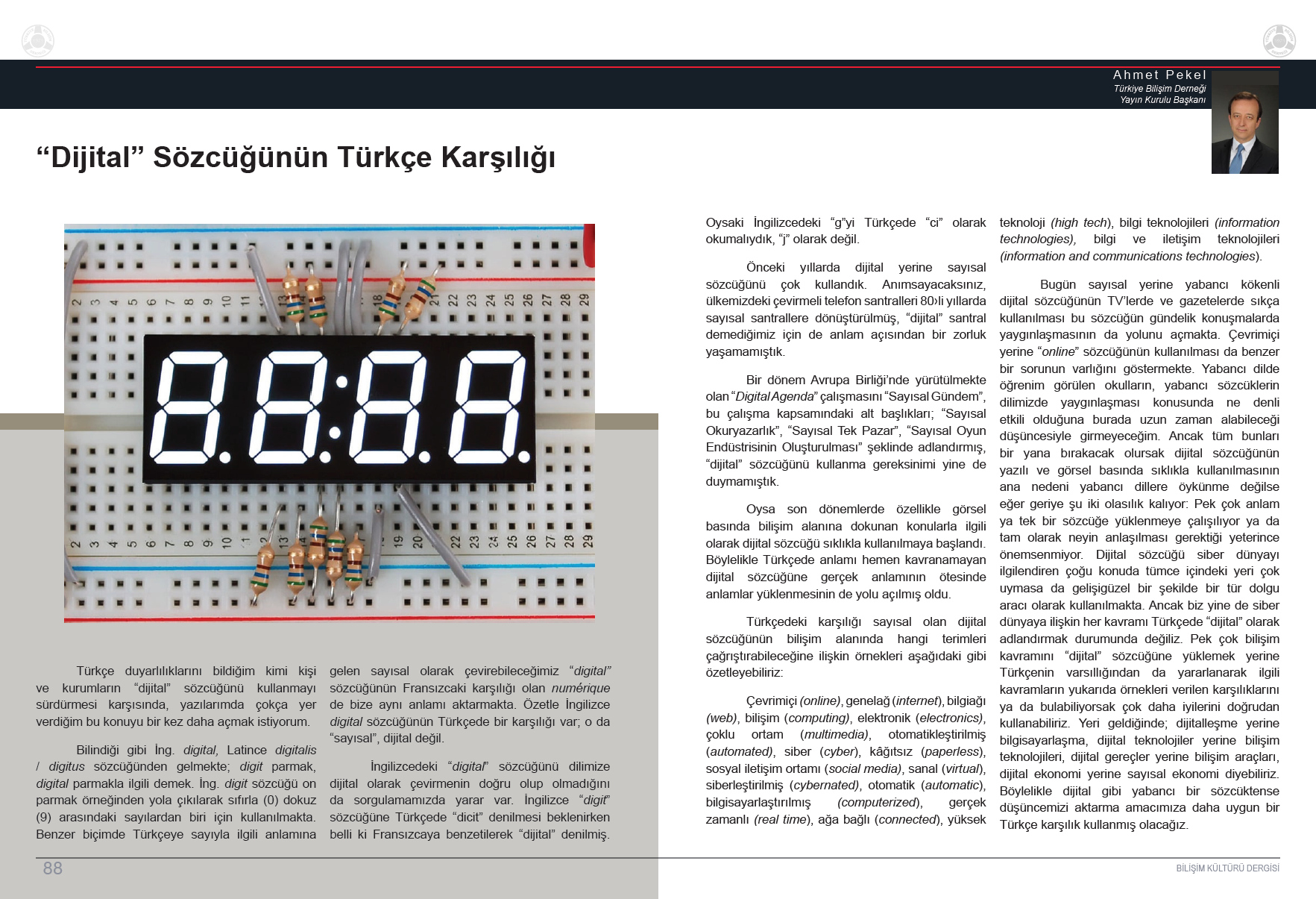 “Dijital” Sözcüğünün Türkçe Karşılığı, Bilişim Dergisi Nisan 2023 Sayısı, Ahmet Pekel, TBD Yayın Kurulu Başkanı